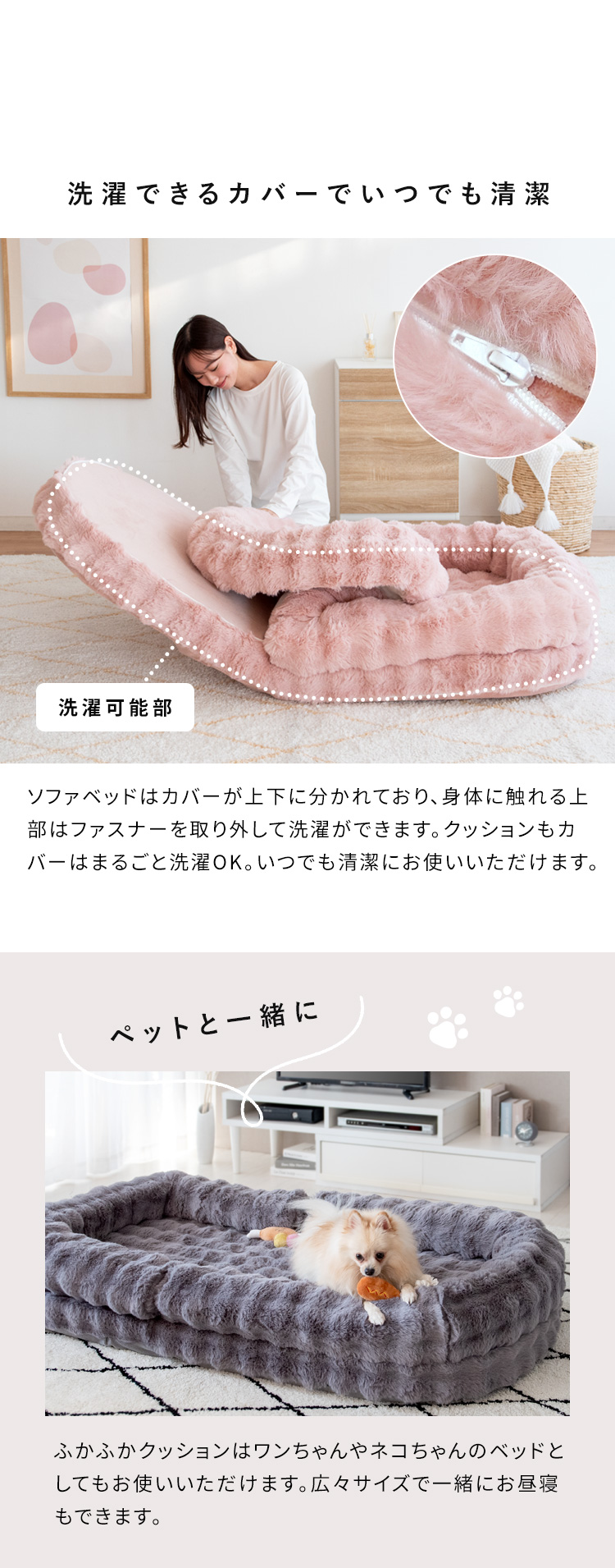 本体カバー上部・クッションカバーは手洗い洗濯可能