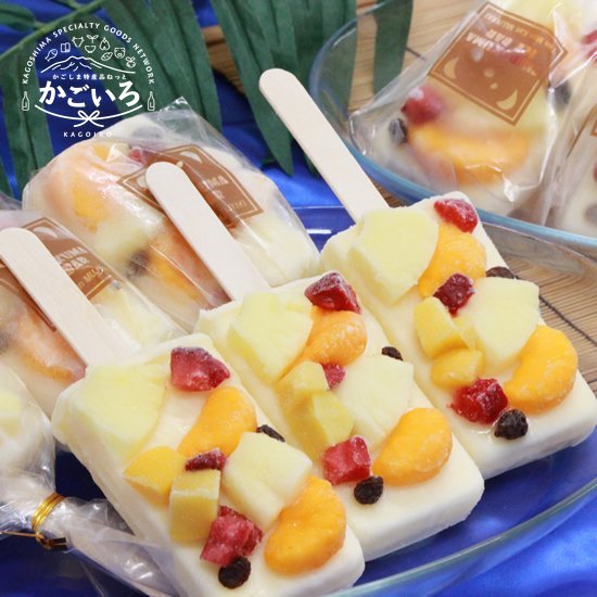 全脂練乳、みかん、パイナップル、砂糖、全液卵、乳酸菌飲料、黄桃、いちご、干しぶどう、水飴、塩/トレハロース、