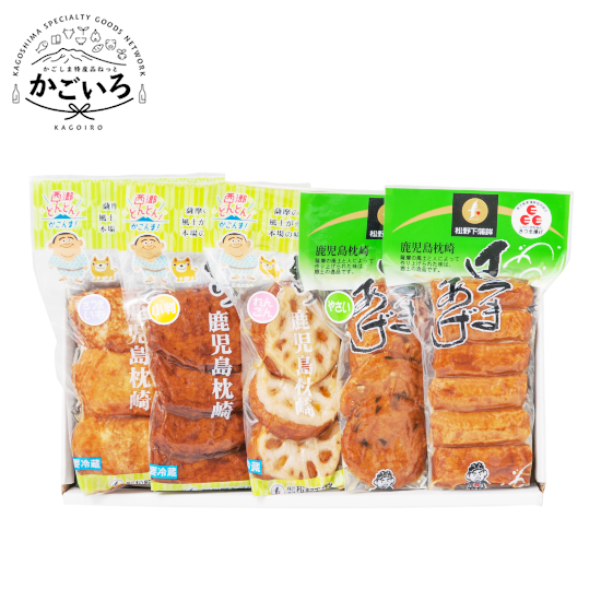 魚肉(国産、輸入)、種物(さつま芋、れんこん、人参、ごぼう、玉ねぎ、にら)、とうふ、砂糖、でん粉、発酵調味料、菜種油、酒(地酒100%(鹿児島県製造))、ぶどう糖、食塩/加工でん粉、調味料(アミノ酸等)