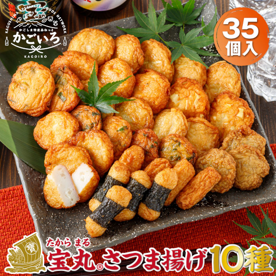 宝丸10種35個(ごぼう天5枚、玉ねぎ天4枚、しそ天4枚、丸天4枚、人参天3枚、棒天4本、のり巻き棒天4本、さつま芋天2枚、にら天2枚、飛魚天3枚)