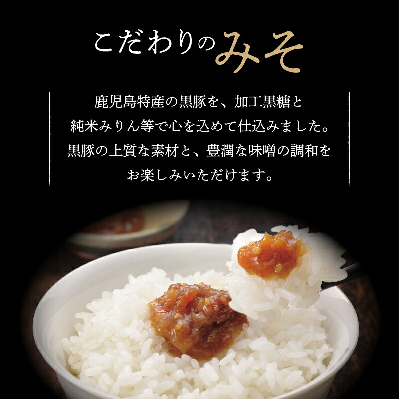 | 保存方法 | <黒豚チャーシュー> 10°C以下で保存してください。 <黒豚みそ> 直射日光、高温多湿を避けて常温で保存してください。 <黒豚みそ(にんにく・にら入り)> 直射日光、高温多湿を避けて常温で保存してください。 |