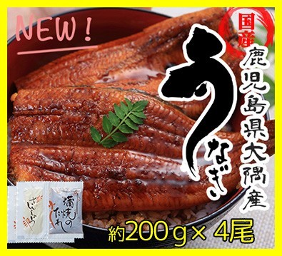 鹿児島 うなぎ 大隅産 鰻の蒲焼き 特大肉厚で美味しい 国産ウナギ 200g×4尾 山椒・タレ付 送料無料 土用丑の日 うなぎ