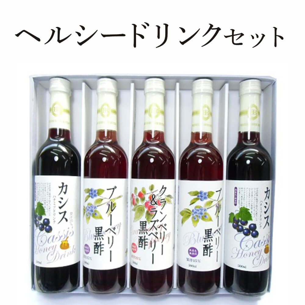 ヘルシードリンク5本セット カシス蜂蜜・ブルーベリー黒酢等 お中元 ギフト 国産