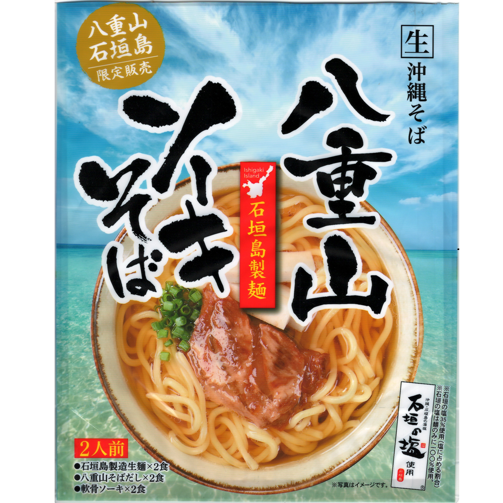| 原材料 | ■めん:小麦粉(国内製造)、塩(石垣の塩)、水飴/酒精、かんすい、乳酸Na、クチナシ色素、(一部に小麦を含む) ■八重山そば濃縮だし:しょうゆ、鰹節だし、調整ラード、発酵調味料、鰹節エキス、昆布エキス、ポークエキス、たん白加水分解物、塩、砂糖、風味調味料(かつお)/調味料(アミノ酸等)、酒精、増粘剤(キサンタンガム)、(一部に卵・小麦・大豆・豚肉・鶏肉・さばを含む) ■豚軟骨味付(軟骨ソーキ):豚軟骨、しょうゆ、砂糖、塩、香辛料/調味料(アミノ酸)、(一部に小麦・大豆・豚肉を含む) |