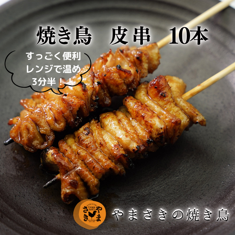 皮串 10本 たれ味 焼き鳥 調理済み 冷凍 やきとり やまさきの焼き鳥 味付き 鶏皮