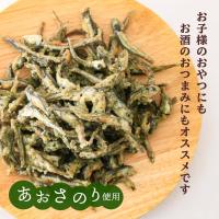 おだし用の煮干しを、鹿児島産の青さのりで味付けし、カラッと小麦粉で揚げました。
