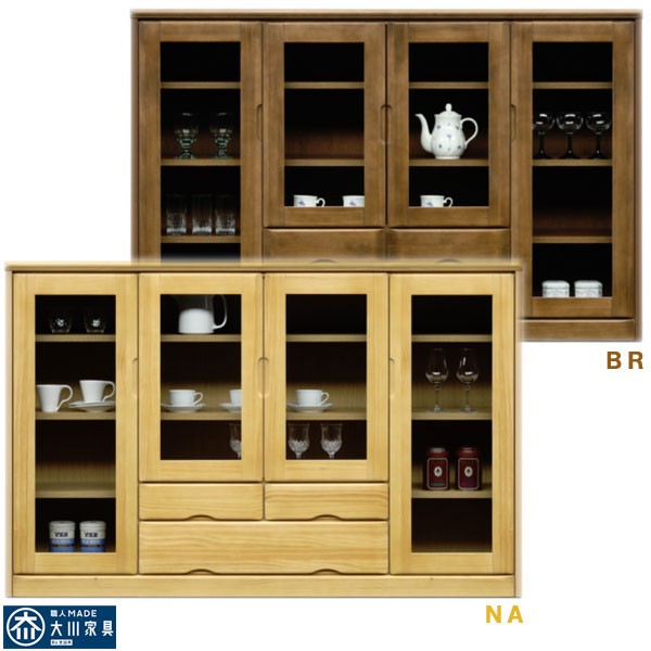 サイドボード リビングボード キャビネット リビングチェスト 収納家具 157幅 幅157cm ガラス扉 引出し 箱組 オートヒンジ ネジダボ 北欧 モダン インテリア 選べる2色 ナチュラル ブラウン 材質 ニレ 大川家具 アウトレット価格並 送料無料 楽天 通販