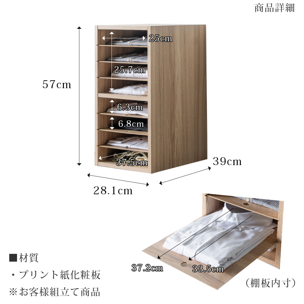 ・新品のYシャツやクリーニング後のYシャツが8枚入るサイズ設計