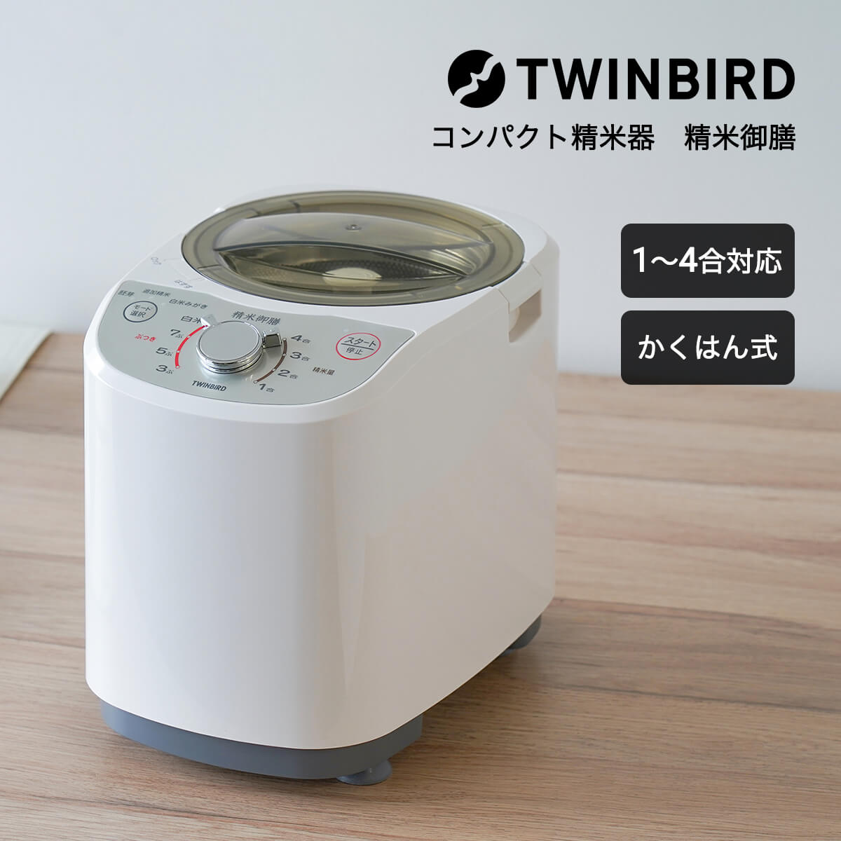 精米機 ツインバード 精米器 4合 精米 お米 かくはん式 ぶつき調整 キッチン家電 家庭用 調理器具 コンパクト精米器 精米御膳 ホワイト MR-E520W 「才:1」