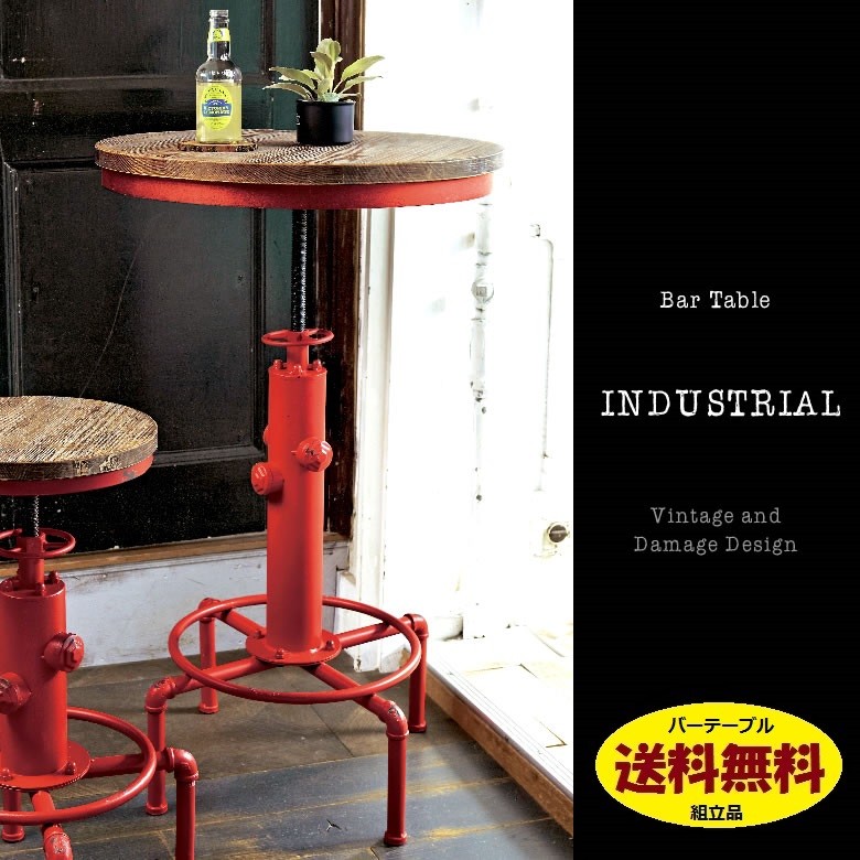 工業製品のような重厚さを活かしつつ、日常で使えるようにデザインされた「INDUSTRIAL(インダストリアル)」シリーズのバーテーブル「KNT-A801」。ヴィンテージ加工された広々丸い天板と、配水管のような特徴的なデザインが目を引く脚フレームはインテリア性もバツグン。高さも昇降できるので使う人やチェアの高さに合わせて簡単に調節可能です。カラーもレッドとブラックの2色をご用意。お好みでお選びいただけます。◎一台一台異なる表情をお楽しみください。