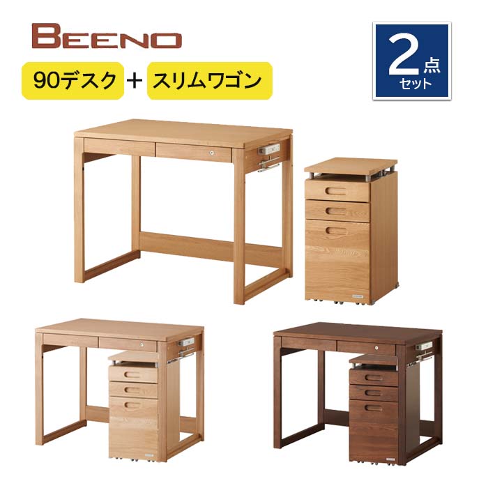 今だけ特典付き コイズミ ビーノデスク2点セット 90デスク スリムワゴン BDD BDW beeno 学習机 シンプル平机 パソコンデスク 袖箱 BEENO