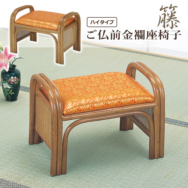 材質:フレーム=籐、ウレタン樹脂塗装・座面=金襴生地(ポリエステル100%)、ウレタン