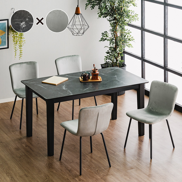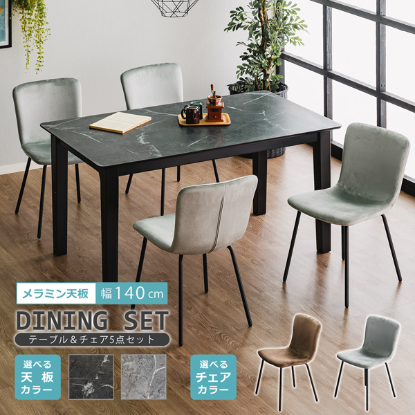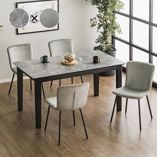 ダイニングセット 5点 幅140cm 4人掛け ダイニングテーブルセット メラミン天板 石目調 ストーン柄 ダイニングチェア スエード調 ファブリック 高級感 おしゃれ
