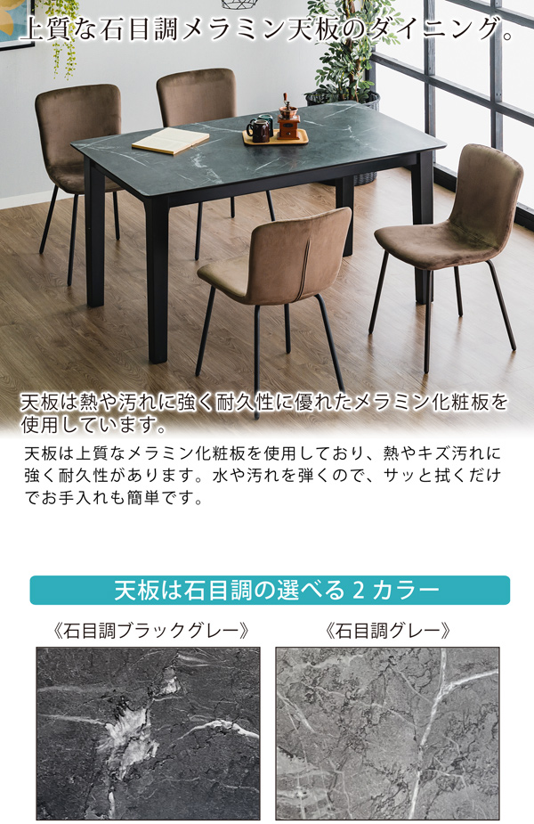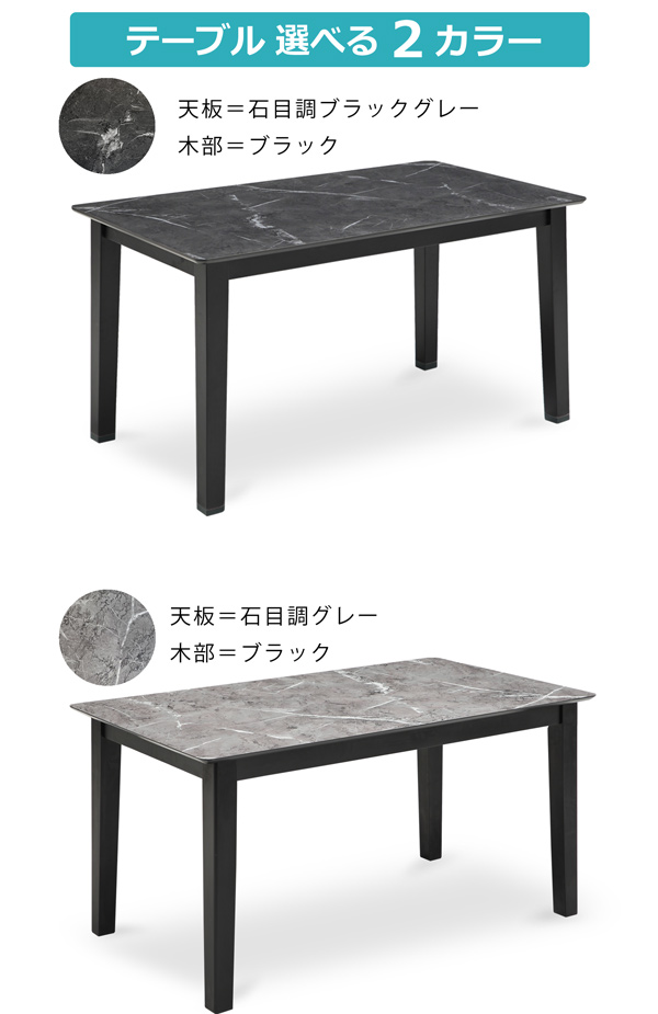 カラー:天板=天板=石目調ブラックグレー/石目調グレー・脚=ブラック/椅子=ライトグレー系・ブラウン系/脚=マットブラック