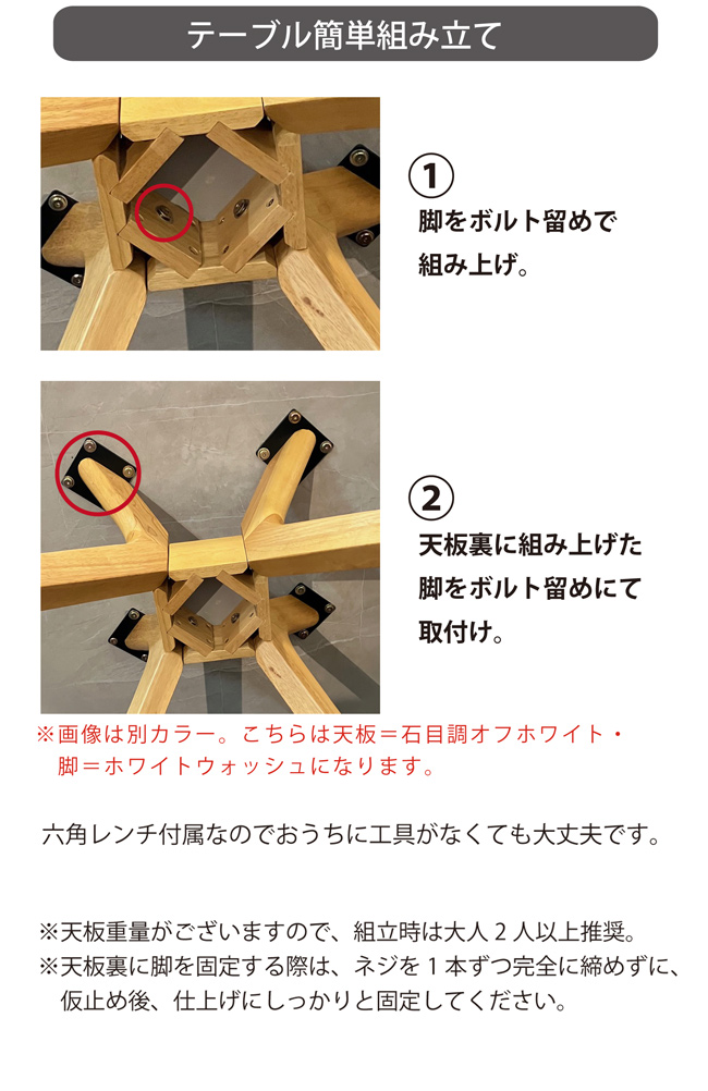 カラー:天板=石目調オフホワイト・木部=ホワイトウォッシュ
