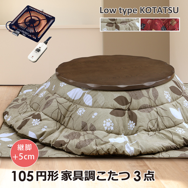こたつ:(約)直径1050×高さ370(継脚:420)mm