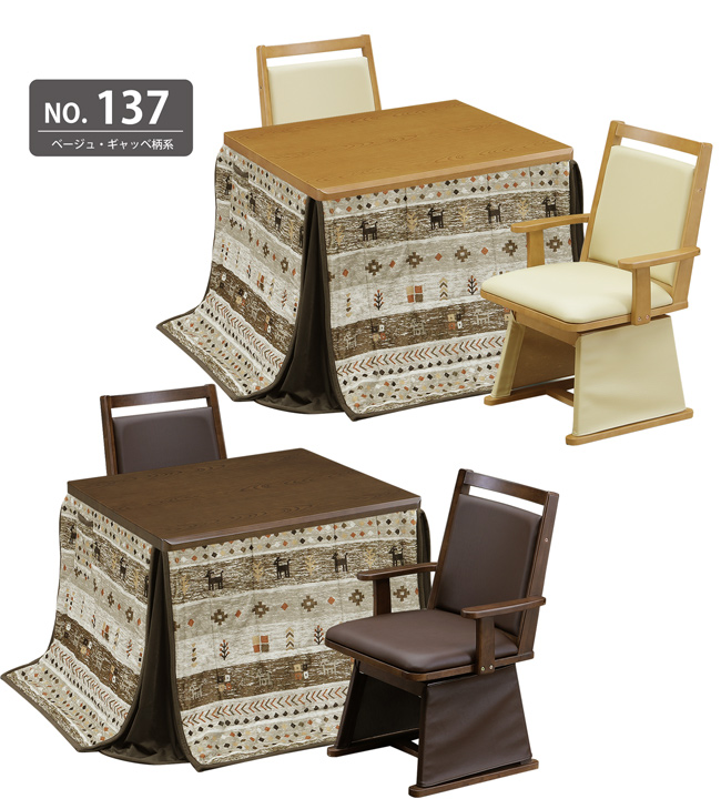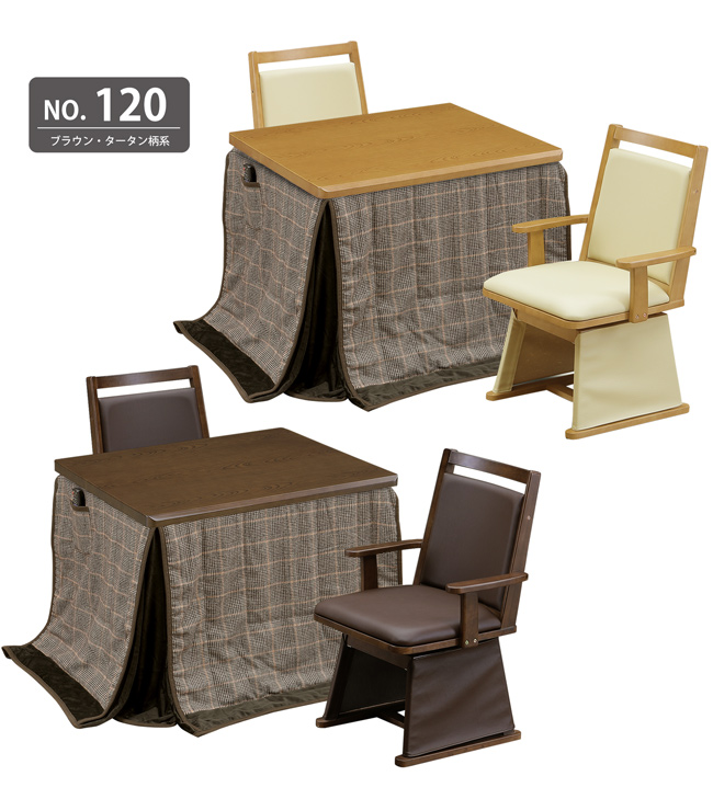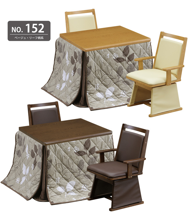 ダイニングこたつ ハイタイプ 90×75 幅90cm 4点セット こたつテーブル 2人掛け 木目調 回転チェア 肘付き 掛け布団 高脚こたつ 家具調 ハロゲンヒーター