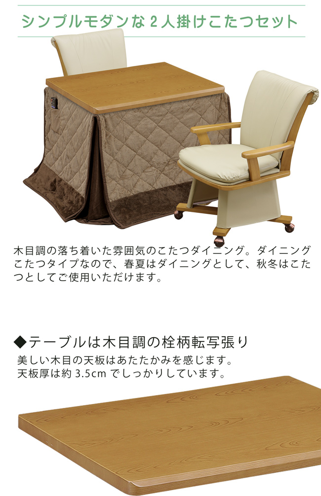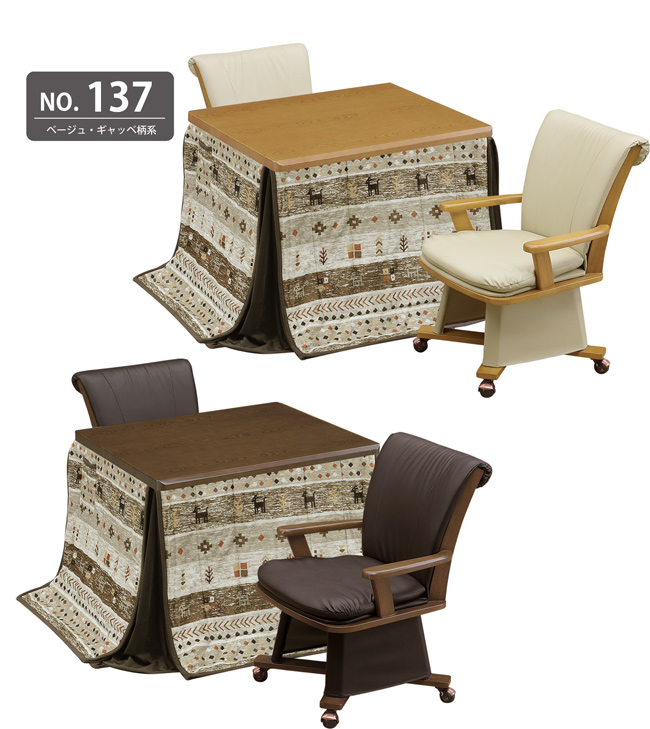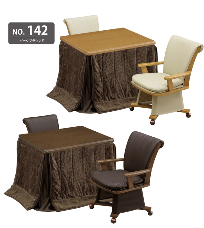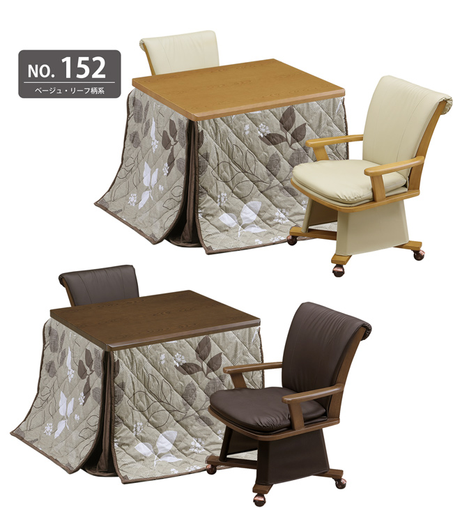 材質:天板=MDF木目調(栓柄転写)、UV塗装、脚=木製・チェア=ラバーウッド、合皮レザー、ウレタン・布団=ポリエステル100%