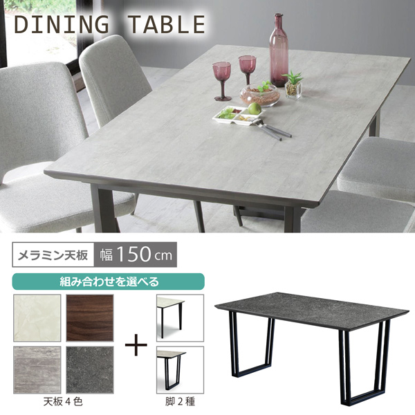 ダイニングテーブル 食卓テーブル 幅150 メラミン天板 アイカ工業 国内生産 ブラック脚 アイアン メラミントップテーブル モダン おしゃれ 高級感 テーブル単品