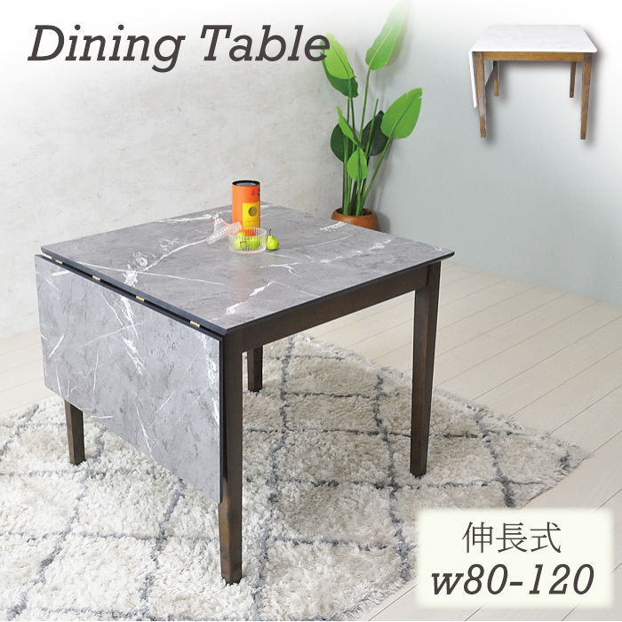 ダイニングテーブル 伸長式 伸縮 2人用 白 大理石調 高級感 幅120 幅80メラミン 汚れに強い 来客 くすみ グレー 北欧 おしゃれ ホワイト