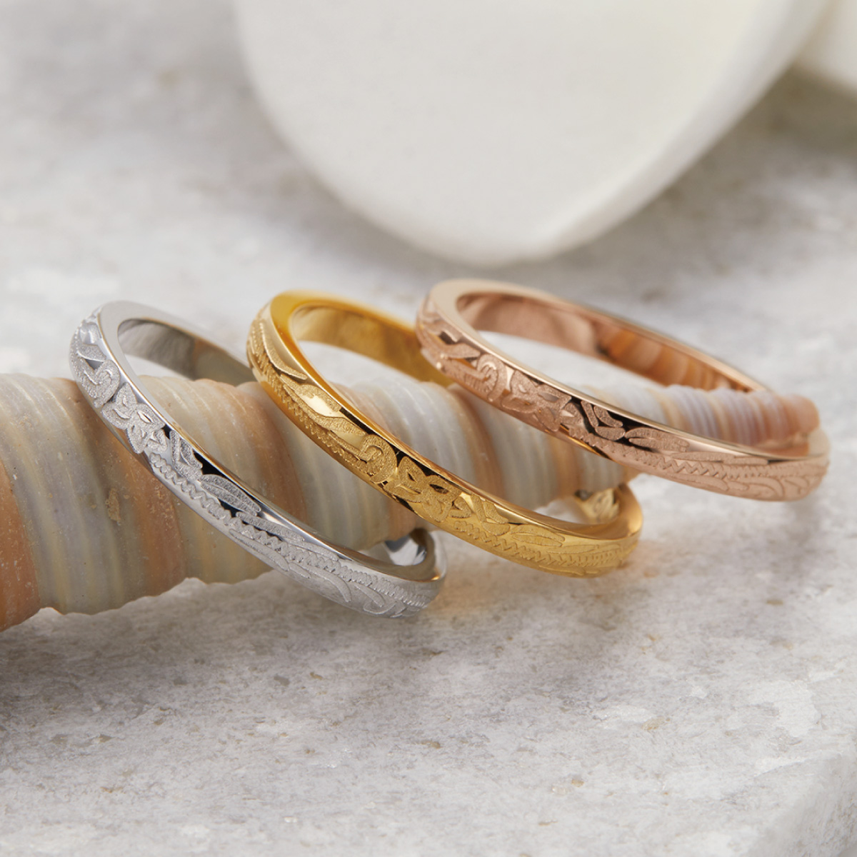 繊細なハワイアン柄がほどこされたハワイアンリング。