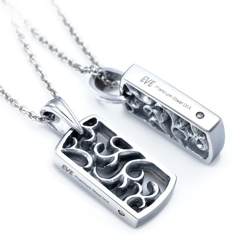 サイドに天然ダイヤモンドを埋め込んだ アラベスク調プレート ペアネックレス天然ダイヤの鑑別カードつき 316Lサージカルステンレス使用 ギフトに最適 爆買