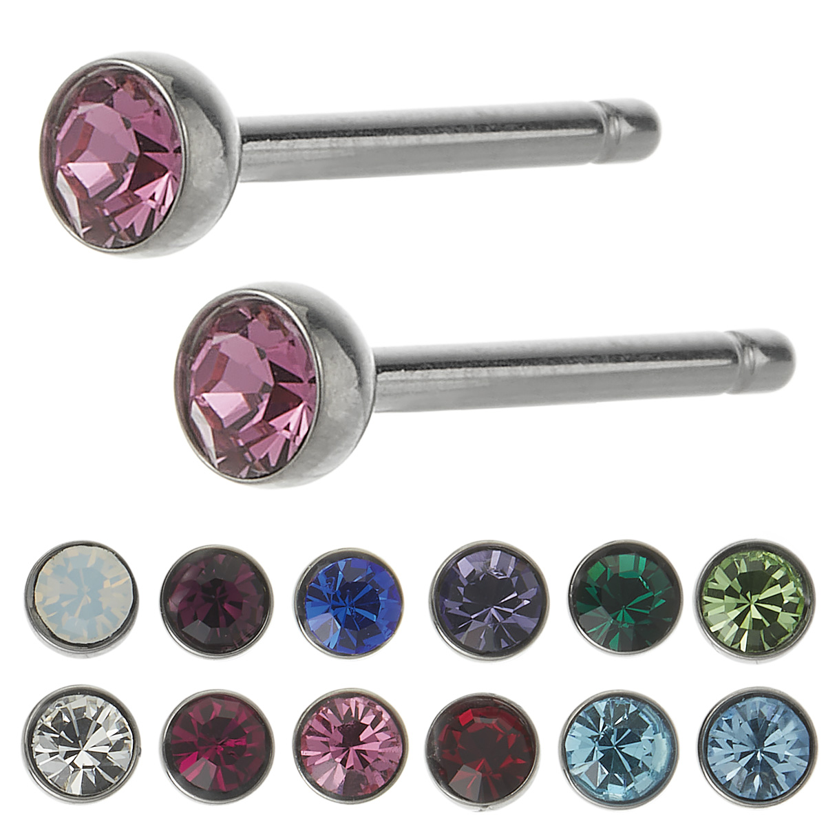 ピアス つけっぱなし チタン製 両耳用 プレシオサ 18G 16G 石サイズ 3mm 丸型 フクリン 覆輪 ワンストーン 一石 一粒