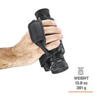 三脚ネジ穴付で腰を据えた監視活動にも重宝。330g軽量コンパクトボディ。
