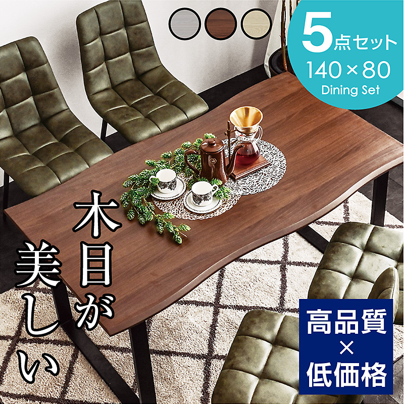 | 当店の おすすめ ポイント | \使いやすい140cmサイズのダイニングセット/ 【洗練された温もりのあるダイニングテーブル】 ・なぐり加工を施し、リアルな木目が美しい一枚板風の迫力ある天板 ・テーブル縁はやわらかな波型の殴り加工 ・スクエア型のスチール脚で高い強度 モダンでスタイリッシュな仕上がり ・スチール脚はマットな質感も落ち着きと存在感があり、塗膜が厚く錆びにくい特徴 ・脚裏には床傷防止のフェルト付き ・4人掛けてもゆったりと過ごせるスペースを確保 ・リアルな木目を再現したメラニン強化シート仕様 【モダンでスタイリッシュなデザインチェア】 ・柔らかくしなやかで本革に近い質感のレザーファブリック ・丸みを帯びたフォルムで快適座り心地 ・触り心地ソフト、クッション性抜群の座面 ・スチール製の脚を座面下でクロス固定 高い安定感を実現 ・脚裏にはがたつきを抑えるアジャスター付き |