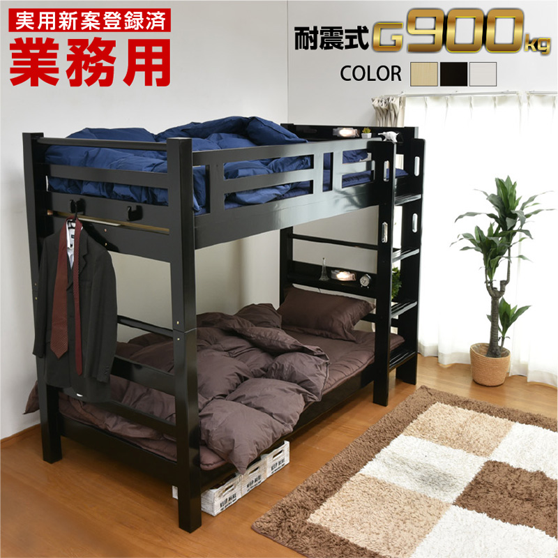 | 特徴 | \アウトレットで激安大特価!/ ・上下段LED照明、スライド式コンセント付き ・垂直はしごでスペースの有効活用が可能 ・上下空間が約1m有り大人でも余裕の出入り ・成人男性5人が乗っても余裕の耐荷重! ・北欧産のパイン無垢材を使用 ・耐震式の上下連結でぐらつきをなくす ・シングルベッド対応 ・社員寮や学生寮・民泊等でもご使用頂けます |