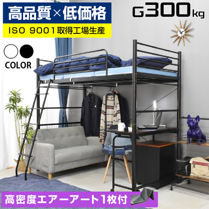 | 当店の おすすめ ポイント | ・側面に筋交いを追加し、安定性アップ! ・ベッド下部が有効に使える高さが嬉しい ・ダブルハンガーパイプ付きで薄手約100着、厚手約50着掛けられる! ・市販のカーテンを取り付けることが出来る ・カーテンフック付き ・将来の事も考えてシングルにもできる ・多彩な収納!フックを利用してスチールネット付き ・自由な大空間を有効活用 ・テレワークや勉強に、折り畳みテーブル付き ・丈夫な50mm柱を採用 ・パイプならではの活用法が沢山! ・シックなデザインで子供から大人までご使用可能 ・ハシゴの位置が変更可能 |