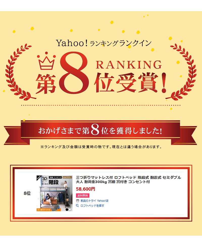 | 当店の おすすめ ポイント | ・ベッド下部が有効に使える高さが嬉しい ・ワンルームや子供部屋など狭い空間でも設置可能 ・自由な大空間を有効活用 ・ハンガーパイプ付きで 【シングル】薄手約50着・厚手約25着 【セミダブル】薄手約70着・厚手約35着掛けられる! ・らくらく昇り降り階段付き ・階段は左右どちらでも取付可能 ・階段下を収納やディスプレイラックとしても使用可能 ・宮・移動式コンセント付き ・嬉しい2段階の高さ調整可能 ・宮棚は簡単取り付け、取り外し自由自在 |