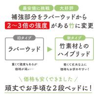 | 当店の おすすめ ポイント | ・竹とLVLの二刀流で強度アップ ・柱部分は強固な竹素材 ・開き止めと縦方向補強板 ・頑丈な斜め掛けはしご ・地震対策・耐震機能を強化 ・MDFで統一感のある仕上がり ・自由な位置にはしごを設置 ・通気性の良いLVLスノコ ・ちょっとした隙間を有効活用 ・シングル2つに分割可能 |