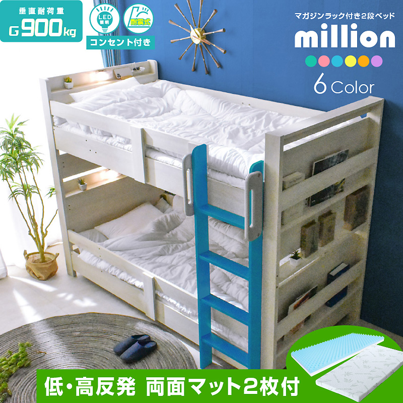| 当店の おすすめ ポイント | \自分好みに選べるカラー全6色/ ・左右のベッドの高さが同じフラット設計 ・お子様が小さいうちはクイーンベッドとして、兄弟仲良く使うことも可能 ・上段に縦の補強板を追加して強度をアップ! ・上段と下段のつなぎ目を固定することで縦ブレをなくし、開き止めで横ブレを防ぐ ・ハシゴをビス止めでガッチリ固定でぐらつきなし ・省スペースを実現する垂直ハシゴタイプ ・ハシゴには丈夫な手掛け付きだから安心して昇り降りができる ・下段ベッド高さ2段階調整可能 ・宮棚、便利な2口コンセント、LED照明、マガジンラック付き ・すのこ床板でオールシーズン快適 |