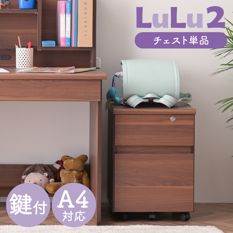 大特価 学習机用 チェスト 単品 デスクワゴン 幅40cm キャスター付き 2段 鍵付き 角丸 シンプル 引き出し収納 コンパクト 木目 子供部屋 キッズ家具 ルル2
