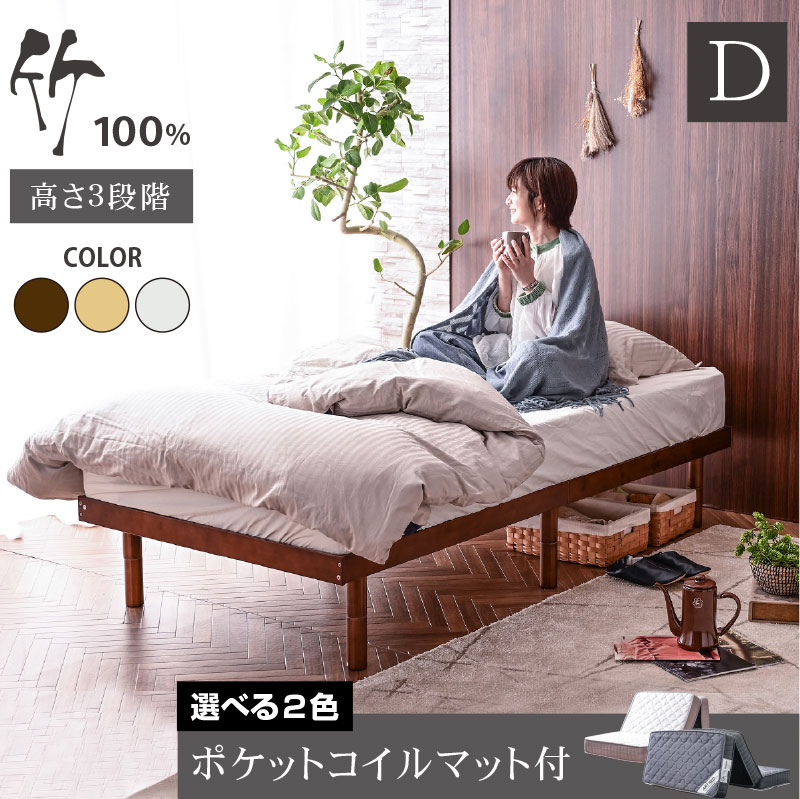 天然木竹 圧縮ポケットマット付 ベッド ベッドフレーム 最安値挑戦 ダブルベッド すのこベッド ローベッド ベッド 3段階高さ調節 モデル1-ART