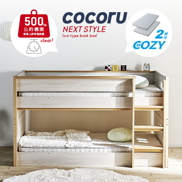 2段ベッド マットレス付き 2枚セット 大人 二段ベッド ロータイプ コンパクト すのこ ベッド ベット 安心 棚付き はしご付き シンプル 子供部屋 新入学 ココル