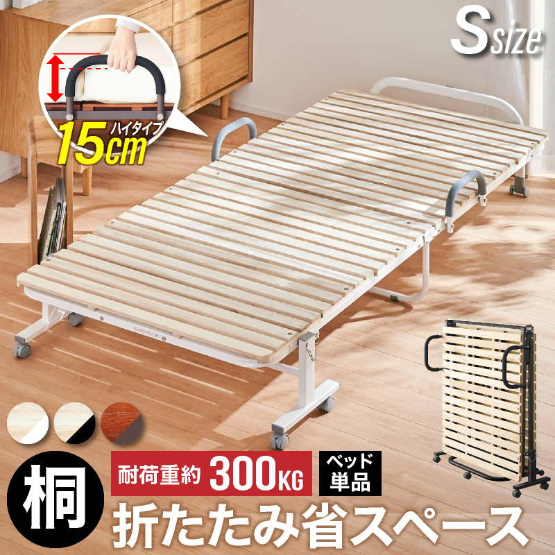 MINIMAL ミニマル 折り畳みベッド シングル: 桐 すのこ キャスター付き の シングルベッド です。 簡単組み立て 小さい梱包 にてお届けします。