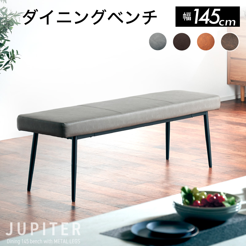 ダイニングベンチ単品 145cm 3人掛け 長椅子 食卓用 シンプル モダン PUタイプ クッション 北欧 グレー ブラウン ジュピターベンチ 爆買