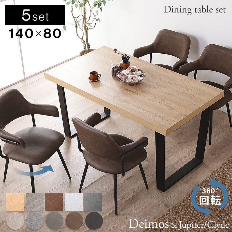 ダイニングテーブルセット 4人用 140 5点セット ダイニングセット 回転チェア 回転式 おしゃれ チェアー 肘付き 鉄脚 ジュピター デイモス
