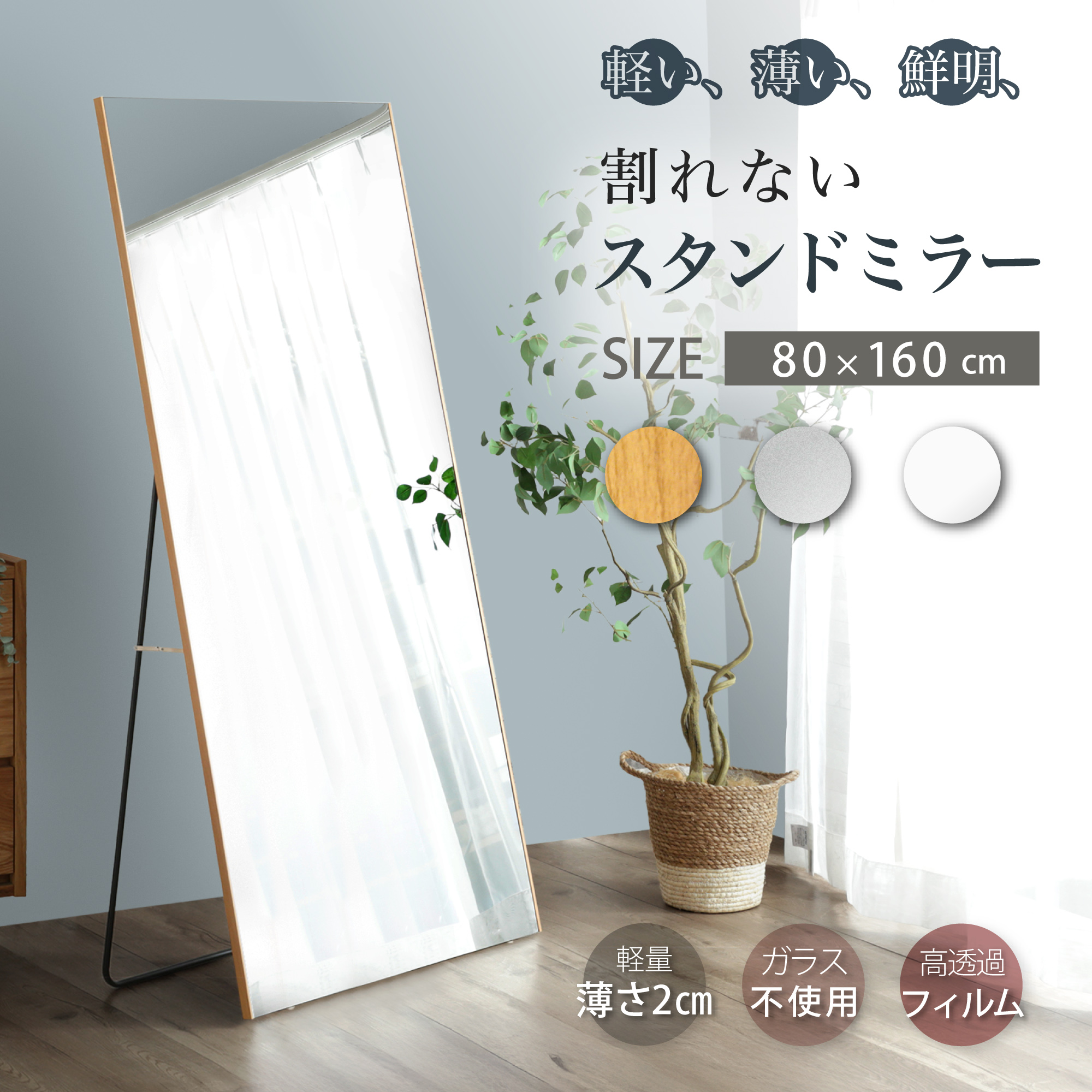 割れない鏡 超軽量 姿見 スタンド 大型ミラー 80x160x3.3cm 壁掛け ウォールミラー 自立 割れないミラー 軽い 全身鏡 Refsafe