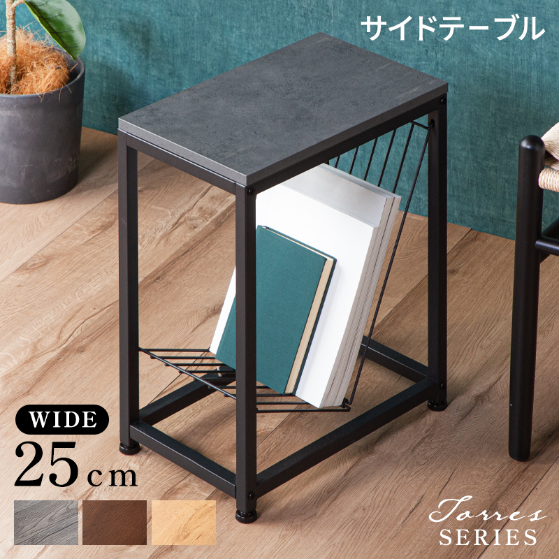 サイドテーブル ナイトテーブル ブックシェルフ 棚付き 木製 天板 スチール ソファ ベッドサイド テーブル 収納 棚 ラック スリム 木目調 寝室 トレス