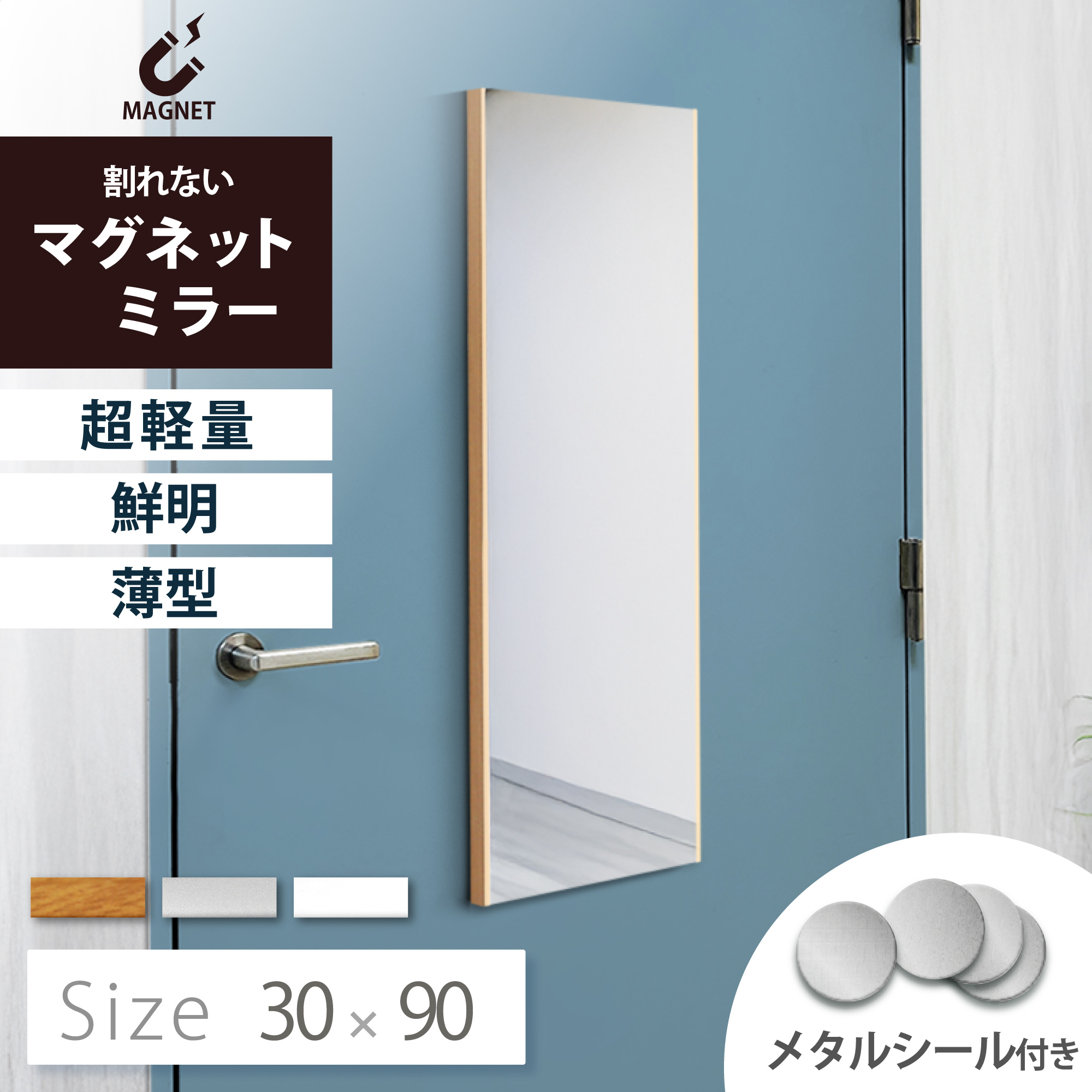超軽量 強力 マグネット付き ミラー 割れない鏡 アルミ ソフト 磁石 30cm 90 軽量 全身鏡 姿見 軽い 壁掛け RefsafeAir