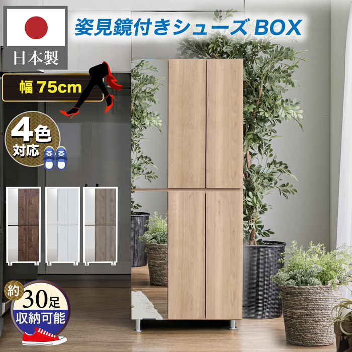 下駄箱 シューズボックス 幅75 おしゃれ 玄関収納 靴箱 収納 鏡 木製 完成品