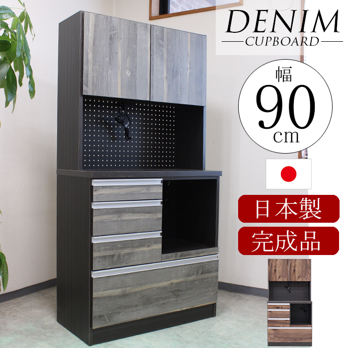 食器棚 完成品 日本製 カップボード キッチンボード 幅90cm レンジボード キッチン収納 モダン