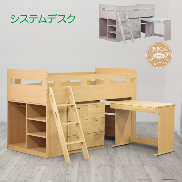 システムベッド ベッド ロフトベッド デスク 学習机 分割式 はしご ベット 机 収納 ハンガーラック 木製