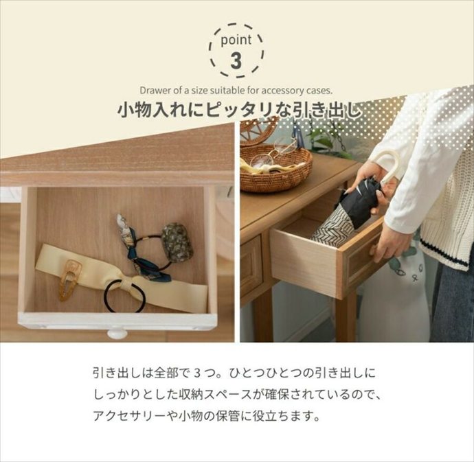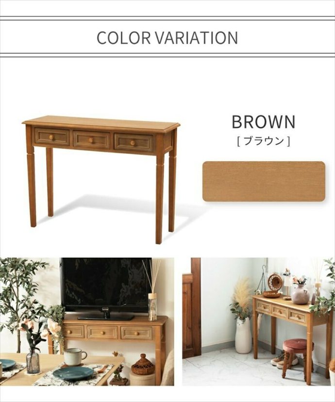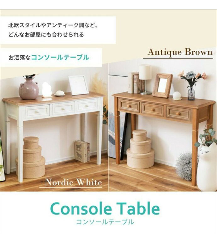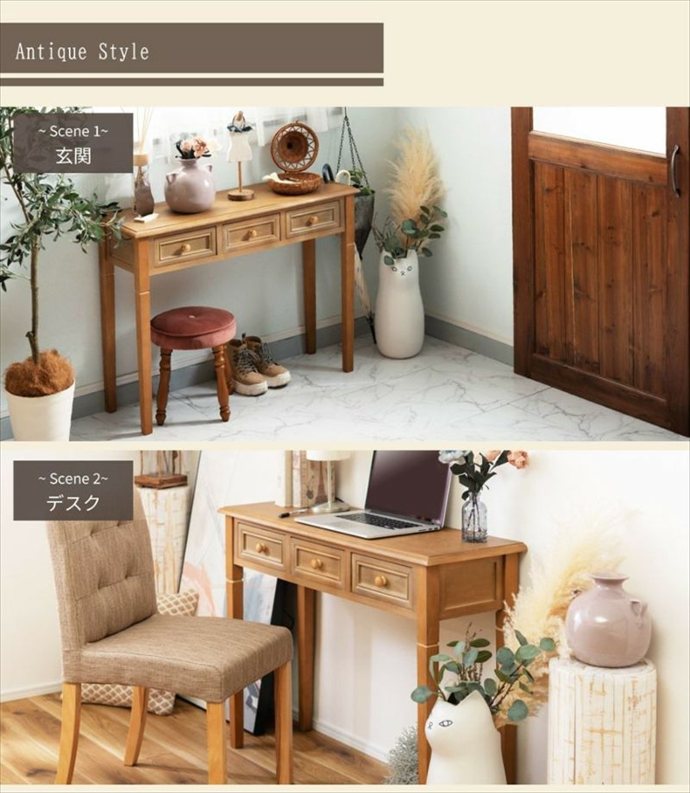 コンソールテーブル テーブル デスク 収納 ディスプレイ 引出し 木製 天然木 アンティーク風 かわいい リビング ダイニング キッチン 寝室 一人暮らし