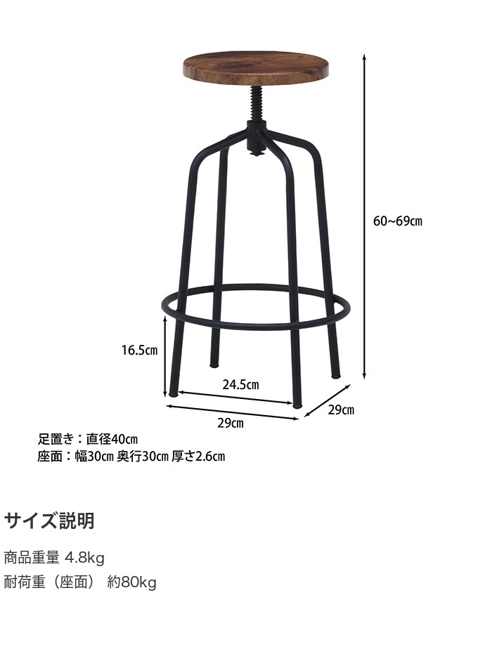 ■サイズ:幅40cm×奥行40cm×高さ60〜69cm