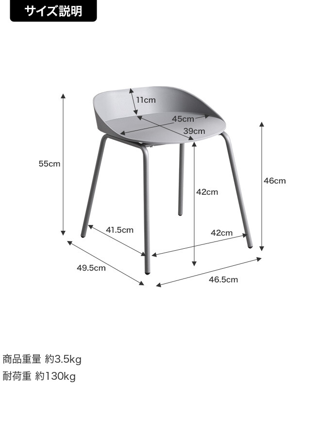■サイズ:幅46.5cm×奥行49.5cm×高さ55cm(座面高:46cm)