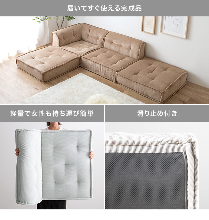 ソファ 1人掛け フロア ロー コーデュロイ コンパクト 低め 1P 一人用 単品ュ 組み合わせ 完成品 リビング ダイニング ポケットコイル ごろ寝 幅76